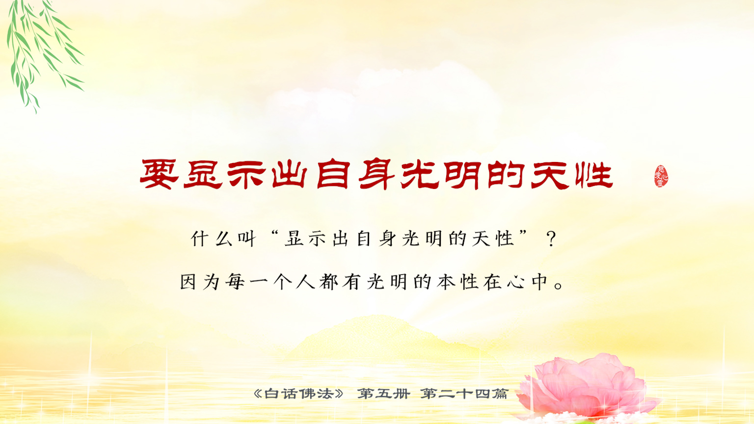 要显示出自身光明的天性。什么叫“显示出自身光明的天性”?因为每一个人都有光明的本性在心中。