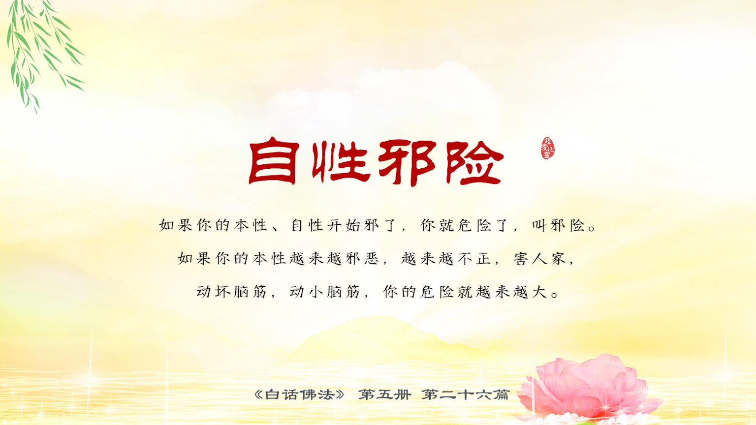 自性邪险。如果你的本性、自性开始邪了,你就危险了,叫邪险。如果你的本性越来越邪恶,越来越不正,害人家,动坏脑筋,动小脑筋,你的危险就越来越大。