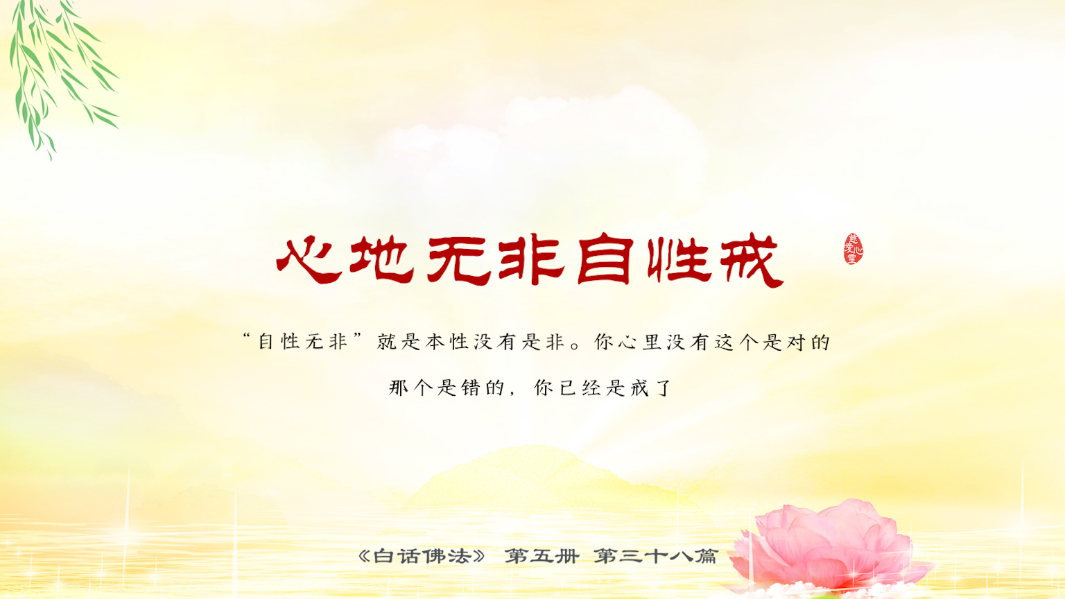 心地无非自性戒。“自性无非”就是本性没有是非。你心里没有这个是对的,那个是错的,你已经是戒了。