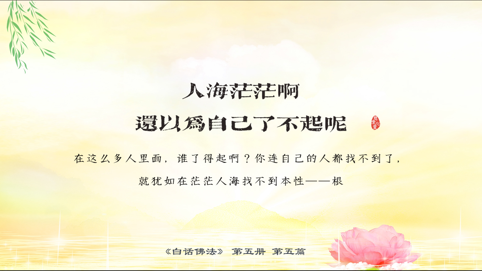 人海茫茫啊,还以为自己了不起呢。在这么多人里面,谁了得起啊?你连自己的人都找不到了,就犹如在茫茫人海找不到本性——根。